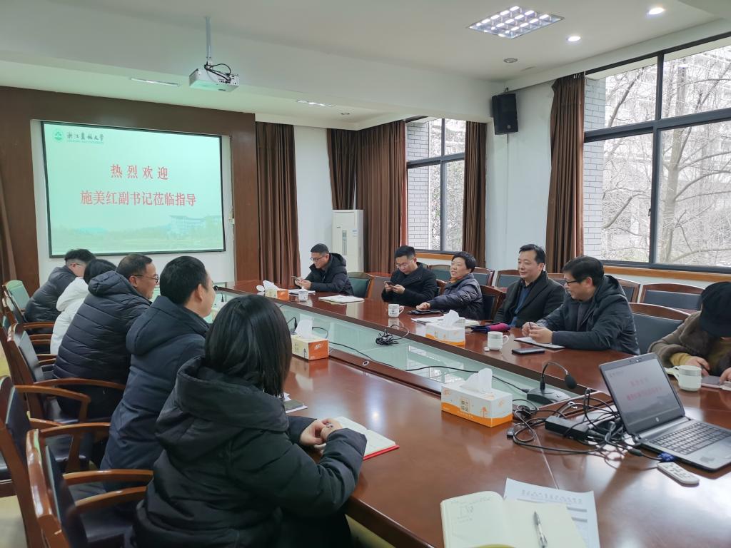 施美红副书记一行到十大买球官方网站走访调研 2月21日下午,校党委副书记施美红一行到十大买球官方网站走访调研,校党委委员、宣传部部长倪建均,学工部部长周晓光,保卫处处长吴青林,校团委副书记方殷杰等一行陪同调研。学院党政领导及全体辅导员参加会议。座谈会上,学院党委书记周凯就2022年重点工作、学科专业团队化建设、党建工作、师德师风建设、存在的问题及下一步工作思路进行了汇报。各分管领导分别就师生返校情况、思想动态、教学运行、科研进展及存在问题作了汇报。各职...