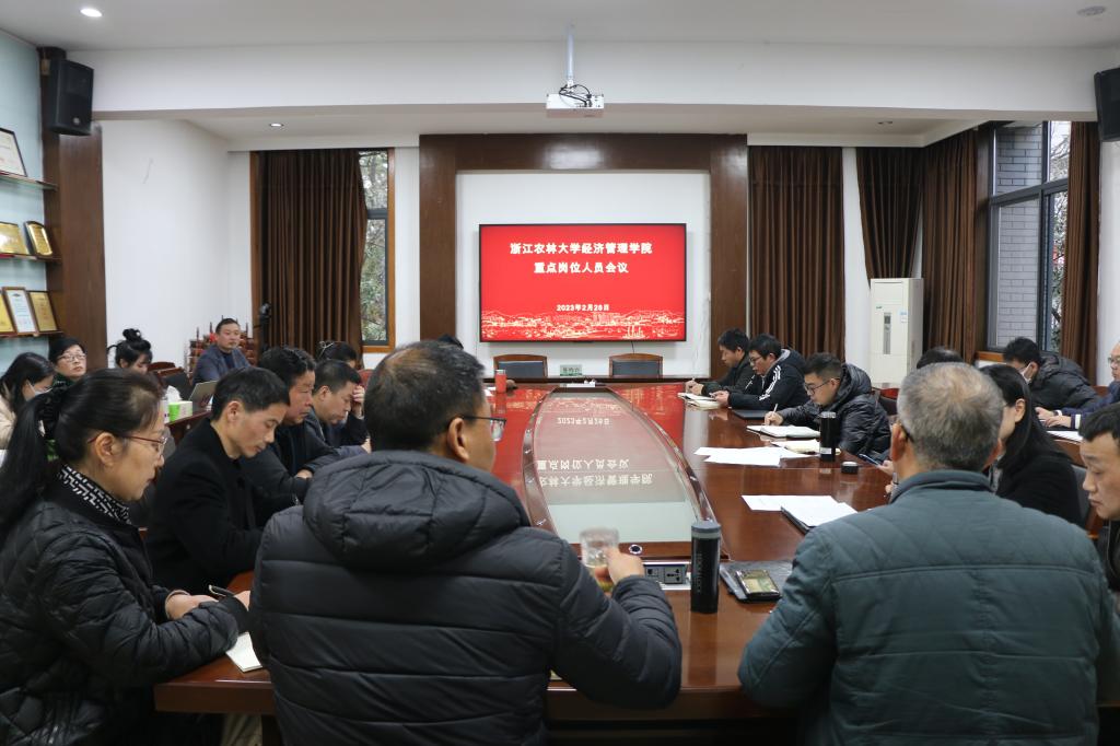 学院召开重点岗位人员会议 2月28日下午,买球赛十大平台重点岗位人员会议在208会议室召开,学院党政班子成员、学院重点岗位人员等参加了会议。会议由院长吴伟光主持。 会上,学院党委书记周凯对教师工作提出三点要求:一要进一步凝练学院特色优势,找准办学定位,扎实做好研究型学院规划落实;二要牢牢抓住学校人才引进的窗口期,引培结合,建设高水平人才梯队,大力弘扬担当精神,积极参与学院公共事务建设;三要学习贯彻落实二十大精神,发挥党组织...
