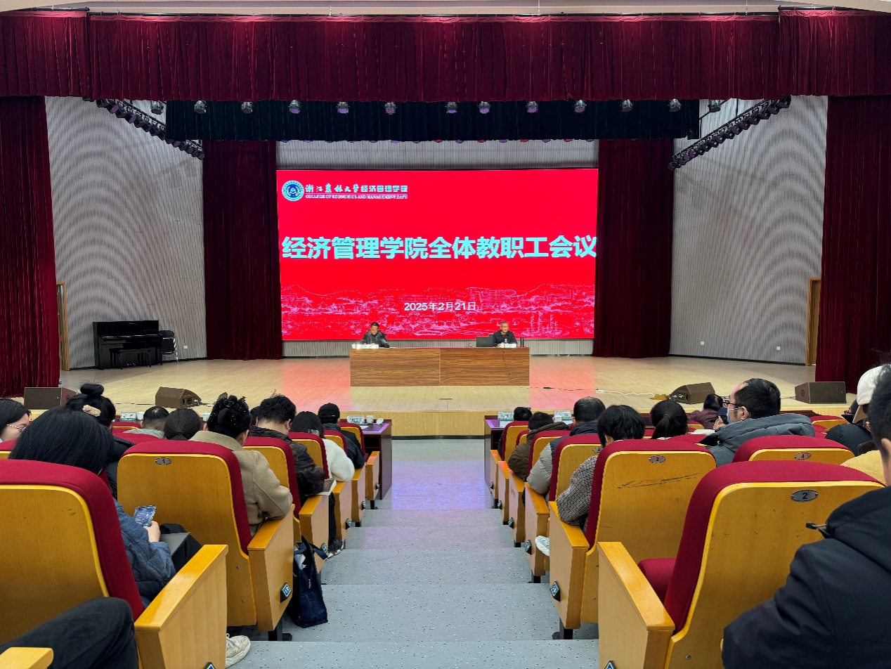 农林经济管理学科召开2024年学科总结会 2025年1月12日下午,十大买球官方网站农林经济管理学科2024年度工作总结会顺利举行。学院全体领导班子成员、浙江省乡村振兴研究院院长沈月琴教授、浙江省乡村振兴研究院首席专家张俊飚教授、兄弟学科负责人与全体学科老师参加会议。会议由学院副院长朱臻教授主持。吴伟光院长对2024年农经学科所取得的成就表示了肯定,也对学科老师一年的辛勤付出表示感谢。吴院长指出农经学科是学院的龙头学科,近年来取得了一系列标志性成绩,在第...