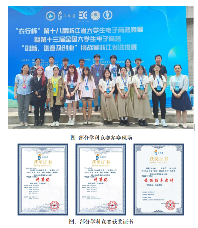 借助地方创业孵化园和学校就业创业平台,大力开展数字经济创新创业训练,专业教师指导学生在全国电子商务三创赛、全国大学生创新创业训练、挑战杯大赛等屡获佳绩,突显专业对创新创业和实践能力培育的成效。