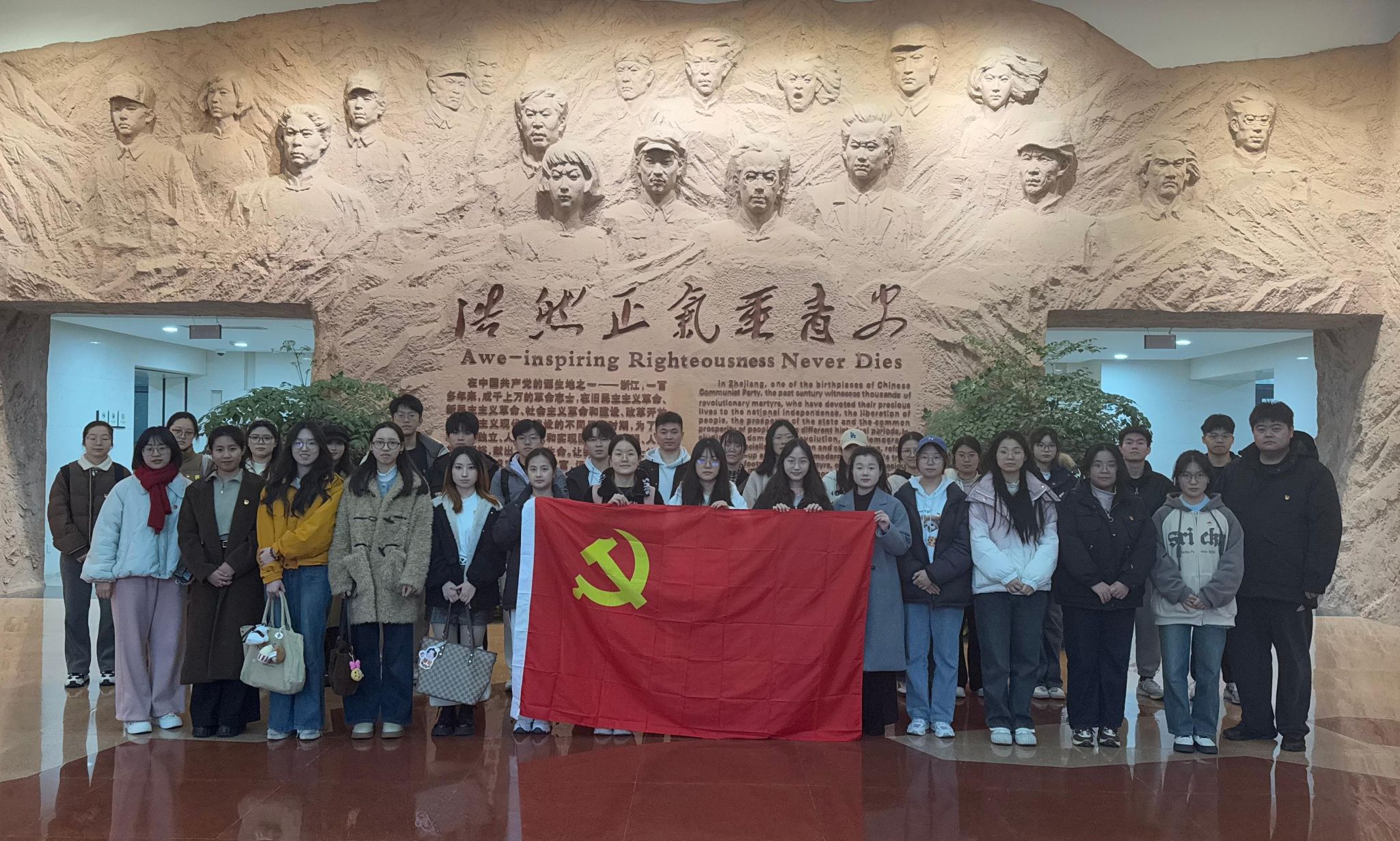 为传承红色基因,汲取奋进力量,近日,十大买球官方网站国贸金融专业学生党支部、工管专业学生党支部以及电商专业学生党支部联合开展的“擎党旗,游红馆”主题党日活动走进了浙江革命烈士纪念馆,共同追寻红色印记,重温初心使命。