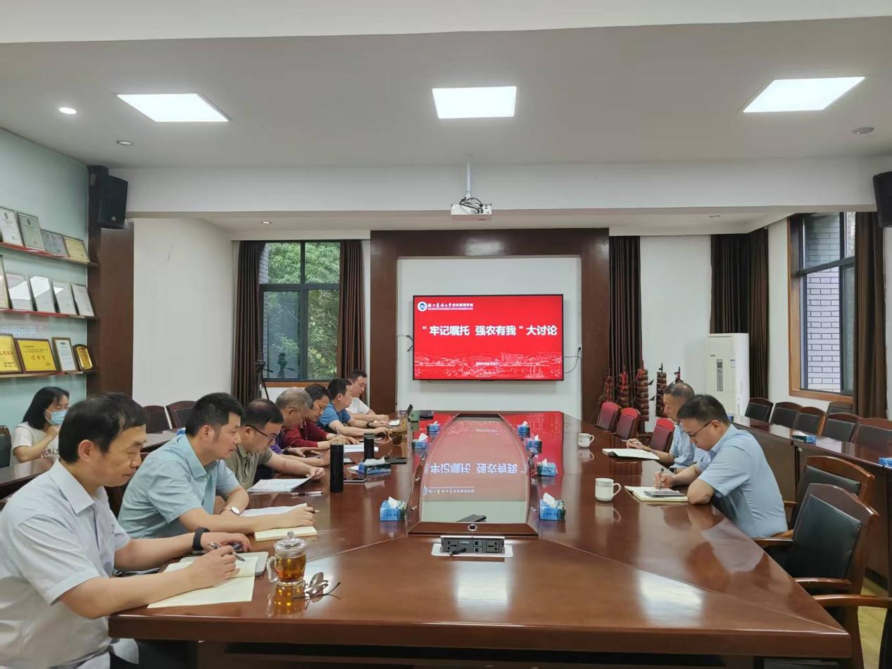 为扎实推进深入贯彻落实中央八项规定精神学习教育工作落到实处,6月9日下午,学院开展“牢记嘱托、强农有我”学习大讨论。校党委委员、副校长吴家胜到会指导,学院党政班子成员及党委学习理论中心组成员参加会议。会议由学院党委书记陈劲松主持。