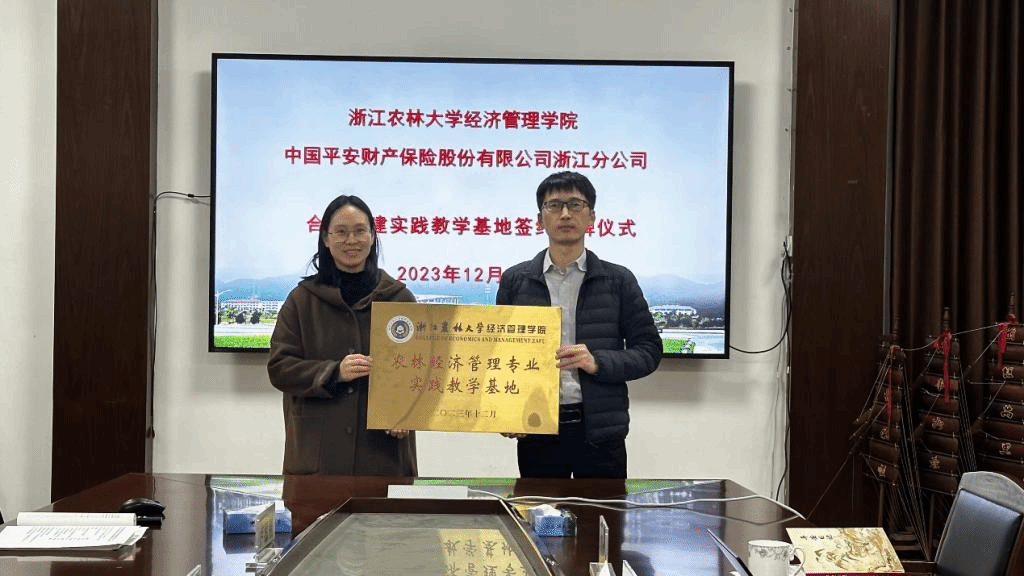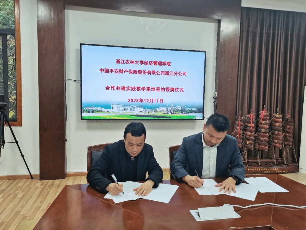 12月11日下午,买球赛十大平台与中国平安财产保险股份有限公司浙江分公司举行合作共建实践教学基地签约授牌仪式在西大楼208会议室举行。买球赛十大平台副院长蔡细平、副书记胡云云、农林经济管理专业负责人、学生办和教学办相关人员,中国平安财产保险股份有限公司浙江分公司副总经理周建毅、农村保险部经理孙瑞、人事行政部相关负责人员参加了仪式。仪式由买球赛十大平台副院长蔡细平主持。