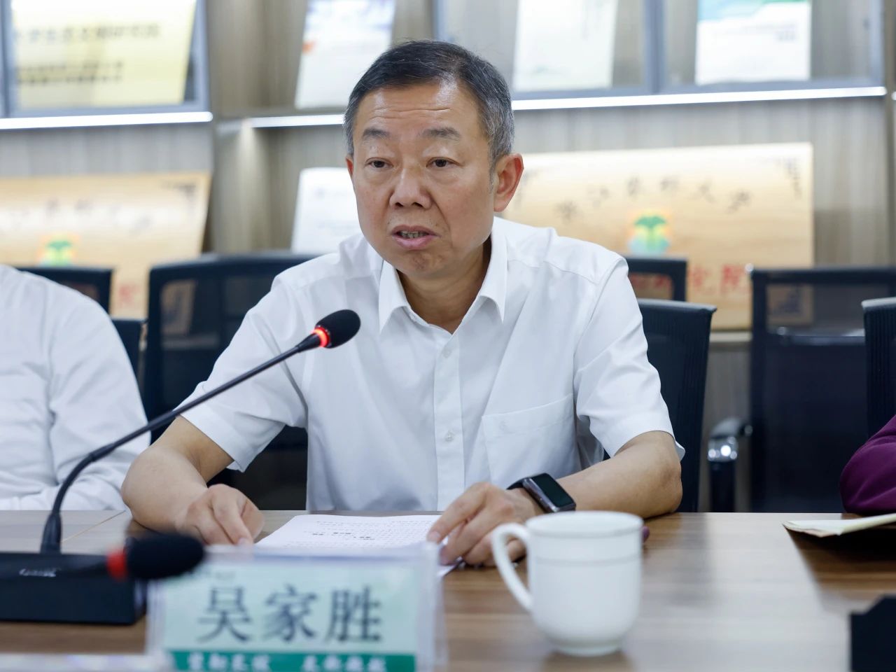 吴家胜副校长对省社科联一行的到来表示热烈欢迎,对省社科联一直以来的指导和帮助表示感谢。他对智库建设谈到三点感想。一是精准策划,加强顶层设计。聚焦国家和区域重大战略凝练主攻方向,积极开展前瞻性、储备性政策研究,开展有组织科研发挥好学校服务生态文明和乡村振兴的特色优势,设计优化智库建设路径,构建学校-学院(学科)-智库良性互促关系。二是主动对标,提升智库能力。对标国家高端智库,把学术追求与现实关切紧密结合,不断苦练内功提升智库能力,特别是在促进学科融合、重大标志性成果持续产出、学术研究的战略性和前瞻性,以及带动社会服务方面下工夫,拿出实招高招,提出有建设性、创新性的意见建议。三是开拓创新,加强资源拓展能力。持续强化开拓进取意识,加强智库与部委之间的合作交流。智库与智库之间要淡化学科界限、强化学科分工为国家地方发展提供更多高质量智库成果,不断提升智库的研究硬实力和公共影响力。吴家胜副校长表示学校层面将一如既往地重视文科建设、提前谋划文科实验室的组建工作,并期待两个智库在建设中取得更多成果作出更大贡献。