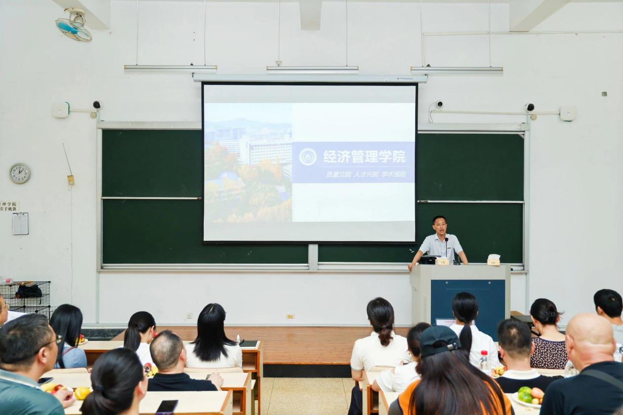 学院召开新生家长交流会,学院党委书记陈劲松为新生家长讲述学院发展情况,学科专业负责人现场答疑解惑。