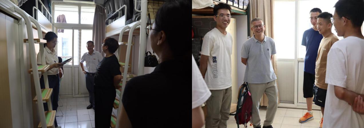 学院领导老师们来到新生宿舍走访慰问,向新生表示祝贺,并希望同学们尽快调整好状态,投入到新一阶段的学习中去。