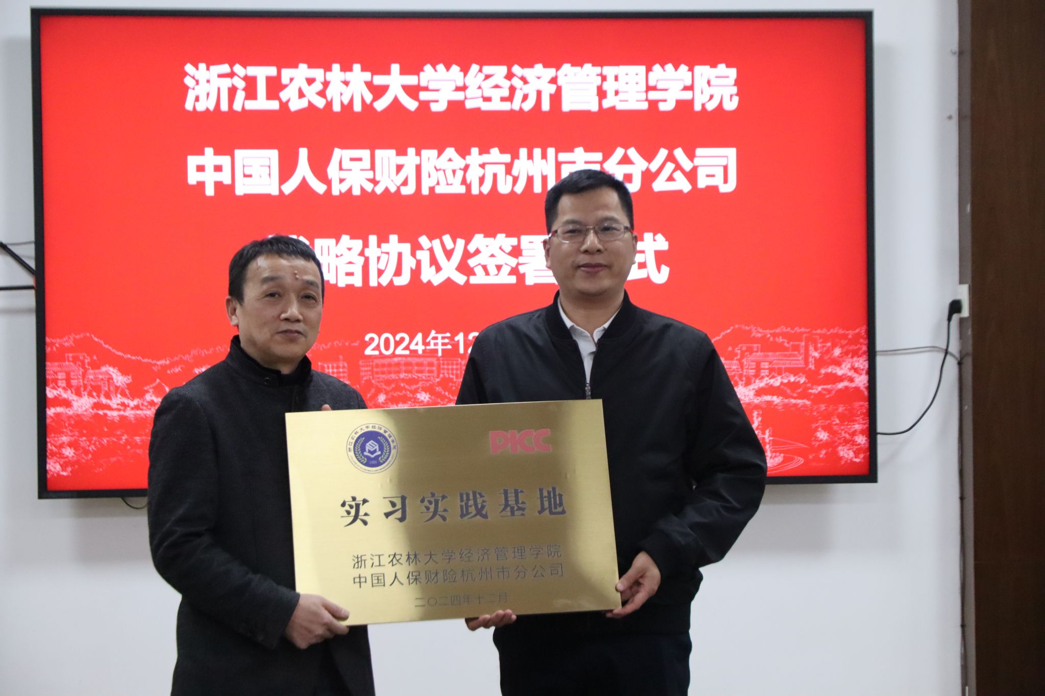 12月18日下午,十大买球官方网站与中国人保财险杭州市分公司战略合作协议签约暨实习实践基地授牌仪式在西大楼208会议室举行。中国人保财险杭州市分公司副总经理詹春林、十大买球官方网站党委书记陈劲松,双方团委、学科专业、行政人事及学生办等相关人员,参加了仪式。