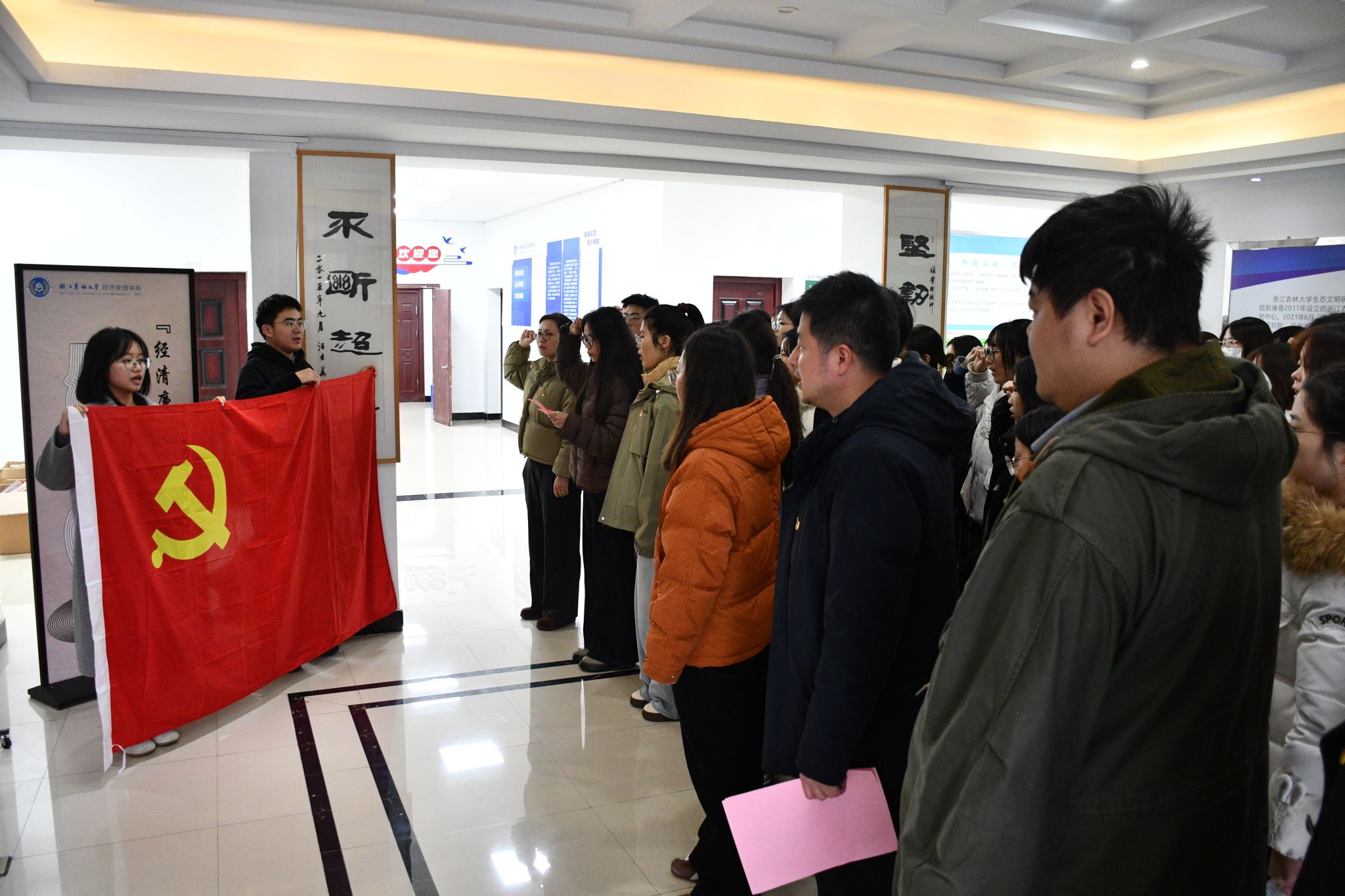 为深入学习贯彻党的二十届四中全会精神,强化党员身份意识与责任担当,12月24日,十大买球官方网站党委开展新发展党员新发展党员"经清廉理"专题教育暨师生党员重温入党誓词活动。院党委副书记曹磊、师生党员代表、2025年下半年新发展党员参加活动。