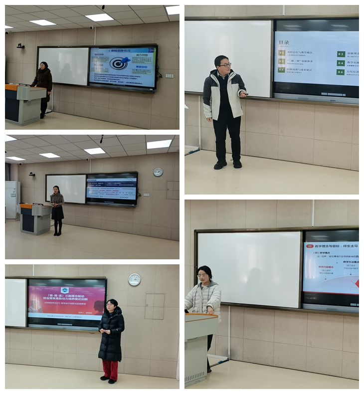 各参赛教师(团队)围绕教学创新主题开展汇报,在 12 分钟的规定时段内,系统地展示了课程教学的创新理念、实施路径以及阶段性成果,同时提交了详实完备的过程性支撑材料,充分体现了其扎实的教学积累与积极的改革意识。评委组依据教师提交的创新成果报告以及现场汇报情况,严格按照既定评审标准进行评分,并从课程教学逻辑、教学学术、创新设计、语言表达等多个维度,对参赛选手进行了细致的点评和专业的指导。