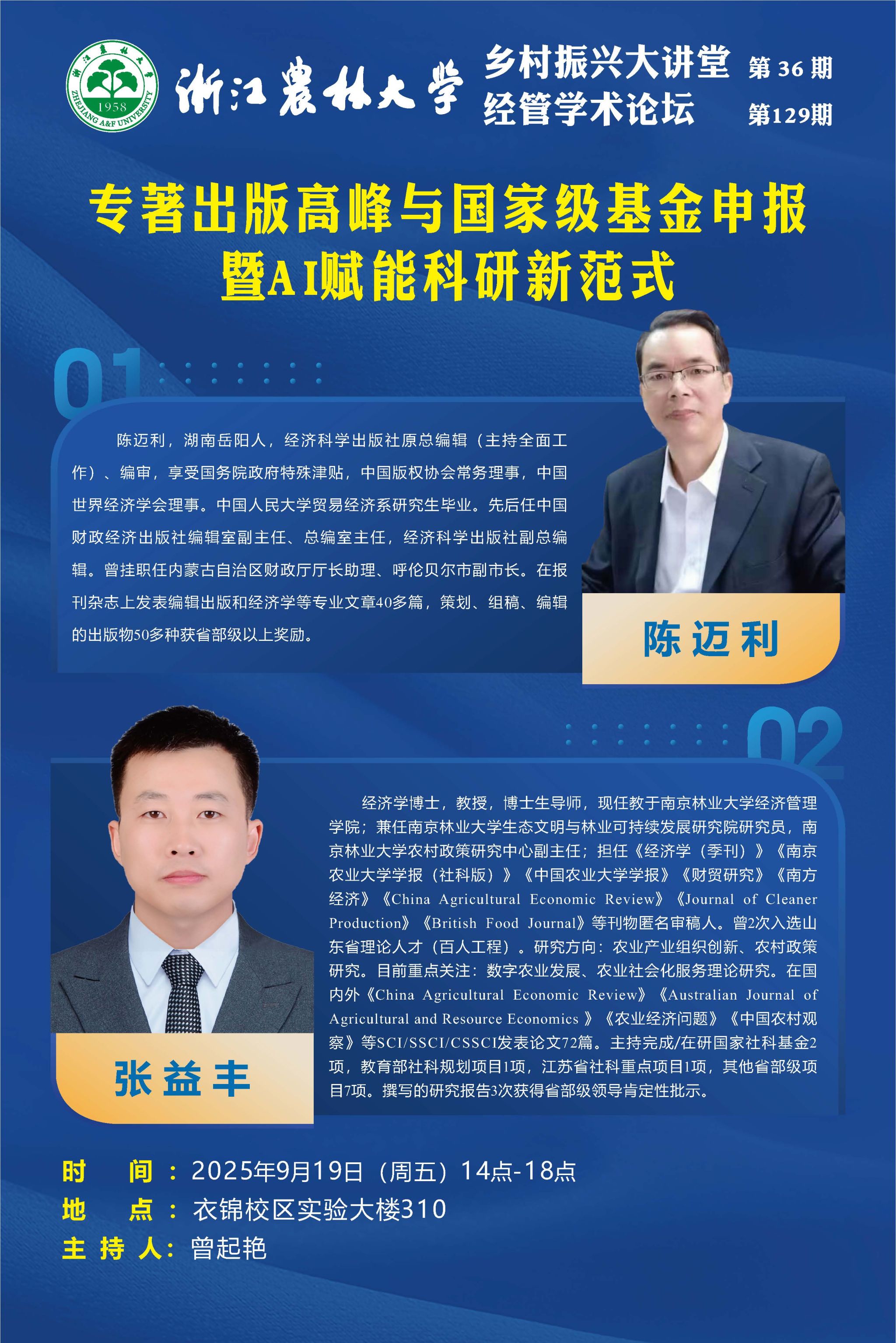 经管学术论坛第129期|专著出版高峰与国家级基金申报暨AI赋能科研新范式