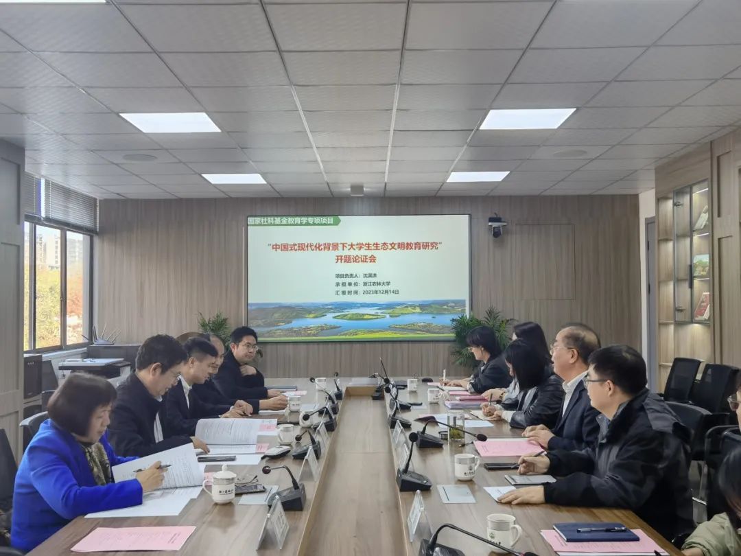 12月14日,“中国式现代化背景下大学生生态文明教育研究”开题专家论证会在十大买球官方网站生态文明研究院举行。浙江传媒大学校长徐小洲,杭州师范大学副校长黄兆信,十大买球官方网站副校长沈月琴担任专家评审,课题组全体成员参加会议。