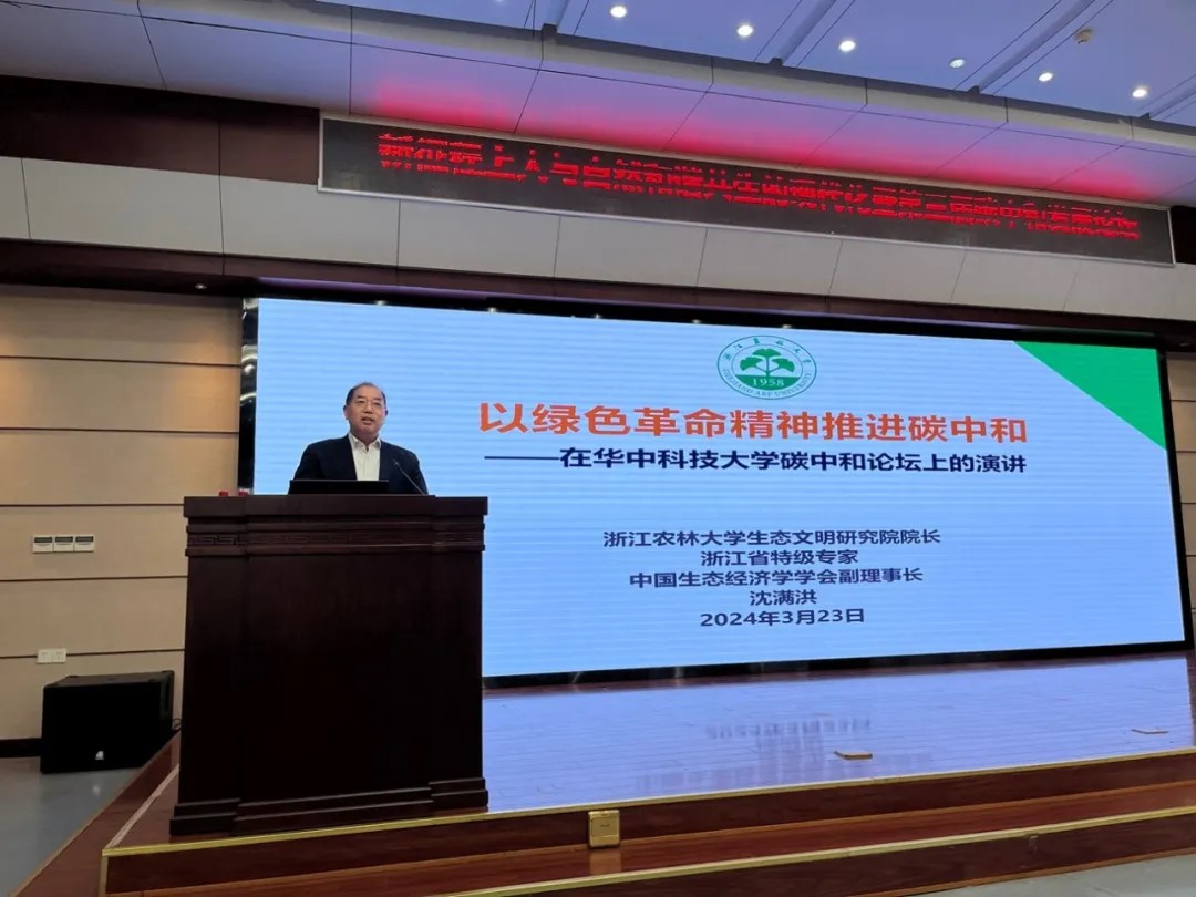 下午,沈满洪教授参加了分别由华中科技大学碳中和研究院院长宋德勇教授和经济学院副院长钱雪松教授主持的“新征程上人与自然和谐共生的现代化暨第三届碳中和论坛”。复旦大学陈诗一教授、中国地质大学成金华教授、十大买球官方网站沈满洪教授、中国环境规划院董战峰研究员、南昌大学刘耀彬教授、中南财经政法大学李小平教授、云南大学文传浩教授、华中科技大学宋德勇教授和王班班副教授等同台发表主旨演讲。沈满洪教授做了题为《以绿色革命精神推进碳中和》的演讲,就绿色革命精神推进碳中和的提出缘由、重点领域、制度保障做了深入浅出的分析和阐述。