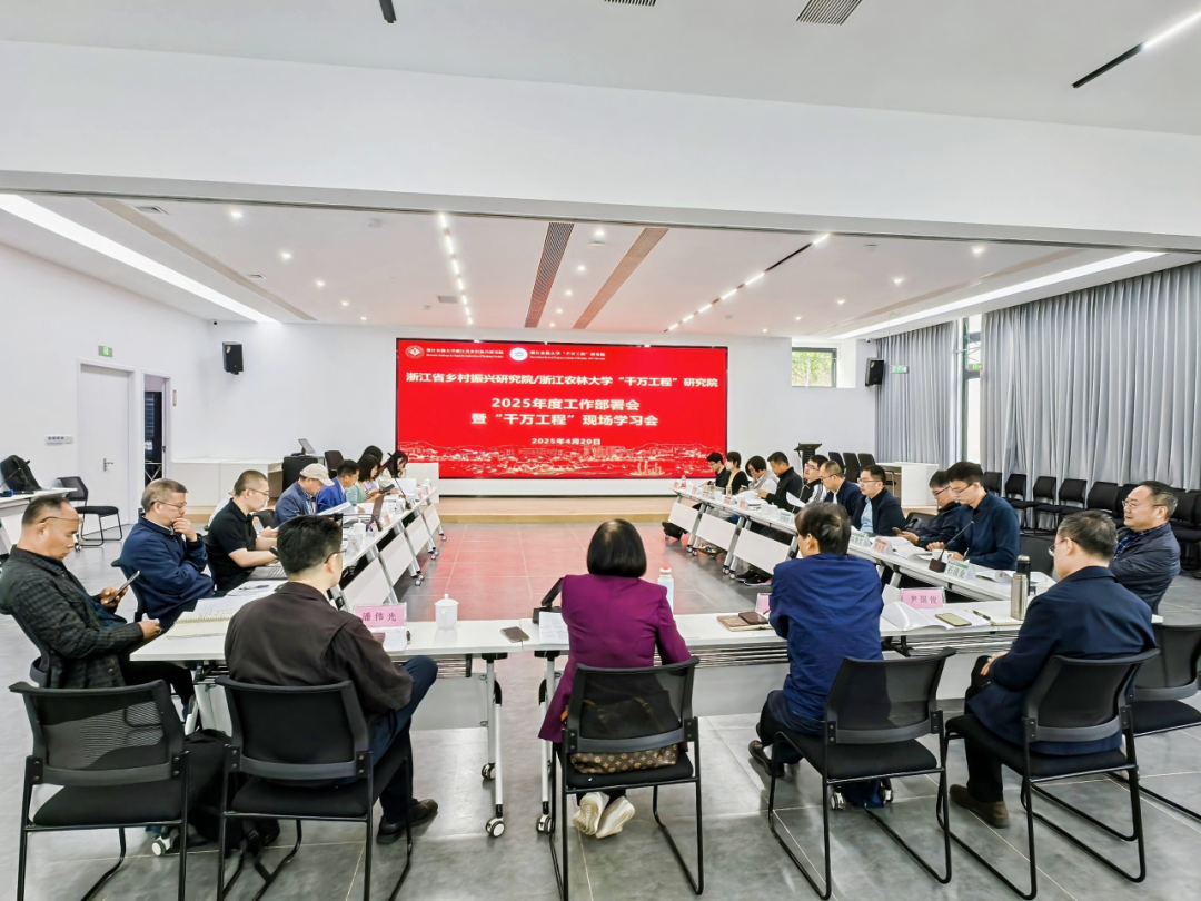 4月20日,浙江省乡村振兴研究院(十大买球官方网站“千万工程”研究院)2025年度工作部署会暨“千万工程”现场学习会在指南村召开。研究院院长沈月琴,首席专家、副院长张俊飚,执行院长潘伟光,副院长尹国俊,方向带头人、主任(所长)和副主任(副所长)、研究人员代表等30余人参加了会议。沈月琴、潘伟光、张俊飚、尹国俊分别主持会议。