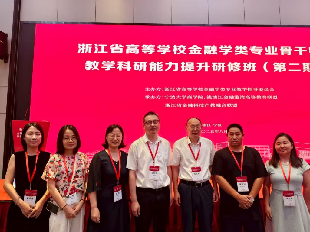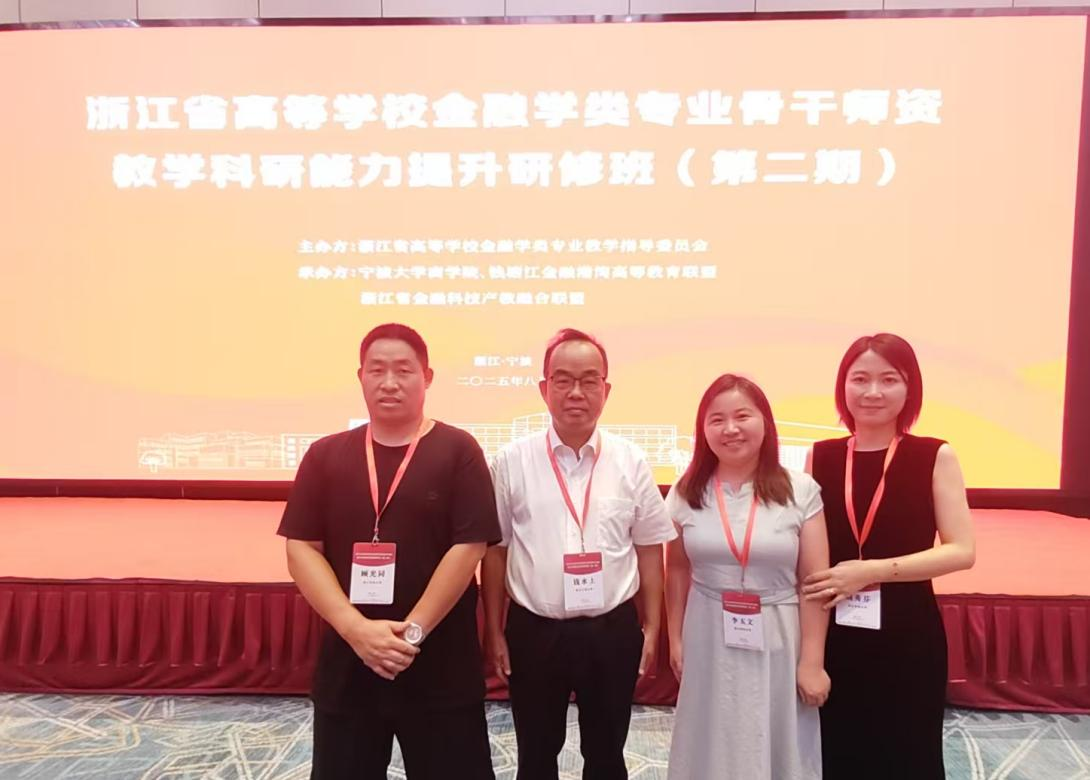 8月24日,浙江省高等学校金融学类专业骨干师资教学科研能力提升研修会(第二期)在宁波大学成功举办。应用经济学学科金融负责人顾光同教授带队,金融骨干教师李玉文教授、刘秀芬博士等共同参会,与来自全省各高校的二级院系负责人、金融学及财政类专业负责人、骨干师资等百余名代表一同参加了这场聚焦金融教育创新与科研能力提升的专业盛会。