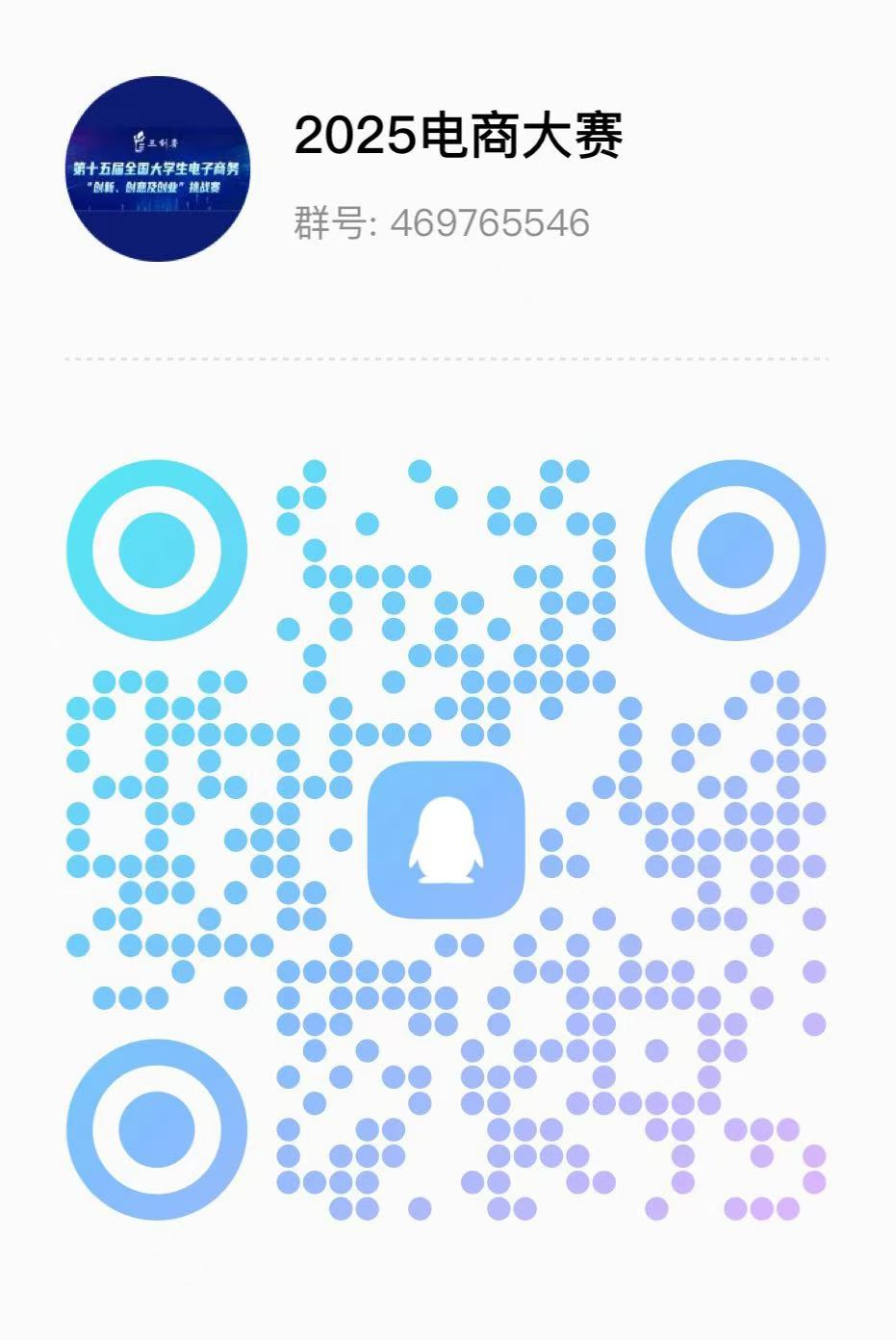 (2)有意参赛者,请以“班级+姓名”方式申请加入“2025电商大赛”QQ群(群号:469765546),获取更多竞赛资讯;