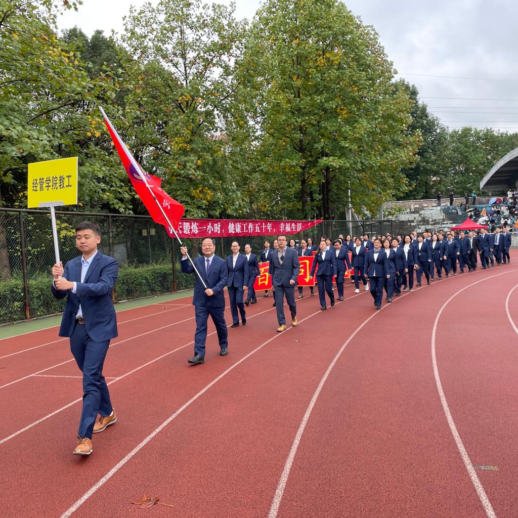 为丰富教职工的文化体育生活,推动全校教职工健身运动,增强教师凝聚力,展示学校新时代教职工的蓬勃朝气,10月21至22日,我校在东湖校区举办了第十二届教职工运动会。此次运动会比赛设趣味和田径两个大项共13个小项,凭借经管学院全体教职工的努力和团队协作精神,赛出了风格,赛出了水平,取得了精神文明和运动成绩双丰收,最终团体总分历史性地获得了第七名。