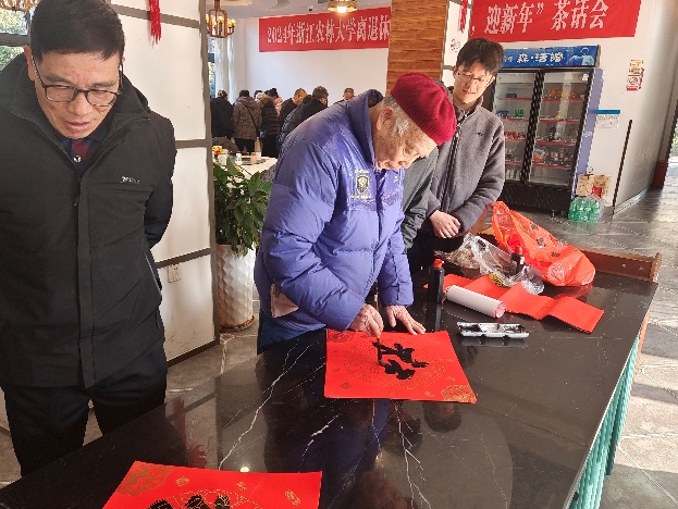 离退休老师和同学们写下了一张张笔力虬劲的福字,饱蘸浓情、挥毫泼墨。