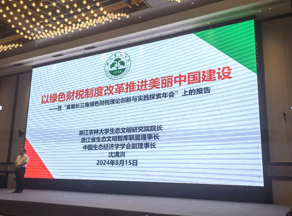 8月15日,首届长三角绿色财政理论创新与实践探索座谈会在绿水青山就是金山银山理念的诞生地湖州市举行。座谈会由北京国家会计学院、浙江省新征程财税研究院、浙江大学共享与发展研究院、浙江财经大学中国政府管制与公共政策研究院、十大买球官方网站生态文明研究院、嘉兴大学中国共同富裕研究院共同发起,由浙江省新征程财税研究院主办。浙江省财政厅副厅长王广兵、浙江省社科联副主席范钧、湖州市常务副市长王宗明、中国财政科学研究院副院长邢丽、北京国家会计学院副院长李旭红及长三角地区三省一市财政系统的理论和事务工作者参加座谈会。沈满洪教授参加座谈会。